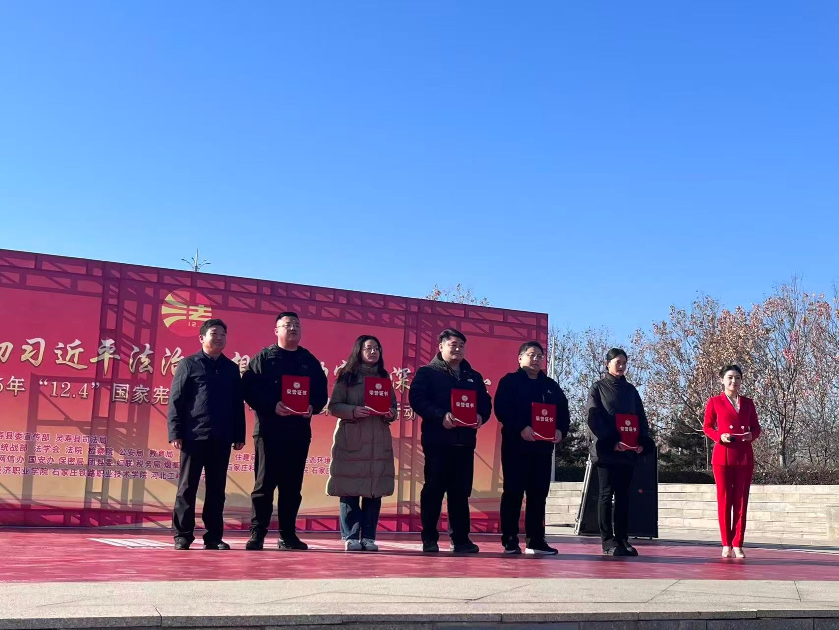 12月4日,灵寿县松阳湖下沉广场洋溢着青春的气息与法治的力量。河北工程技术学院学生工作处积极响应国家宪法日号召,联合灵寿县司法局、教育局开展"青春与宪法同行,梦想与法治共进"主题普法宣传活动,以青春之声唱响时代法治强音。