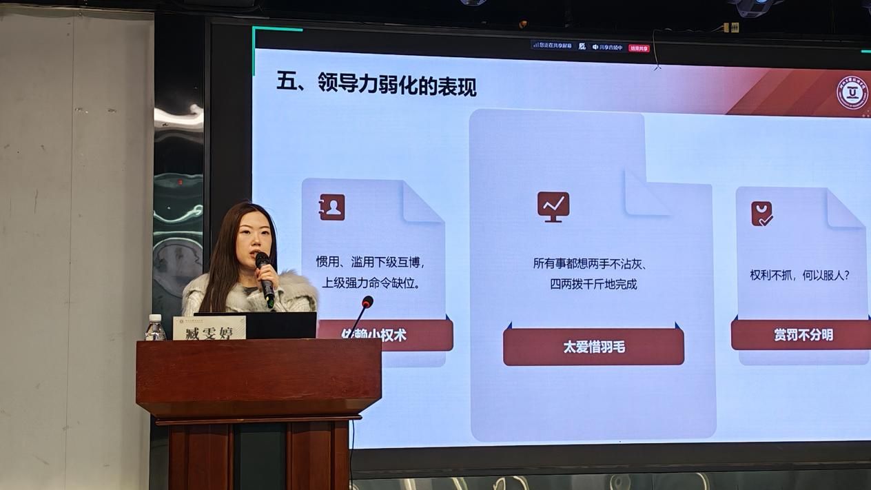 由商学院辅导员岳亚鑫老师主讲。如何让班会不再是“事务通知会”,而是“成长赋能会”?课程围绕主题选定、流程节奏、互动设计展开,重点演练开放式提问与倾听反馈技巧。班长们学会了营造安全、开放的会议氛围,在思想引领中自然融入价值塑造,真正成为班会的主持人与引导者。