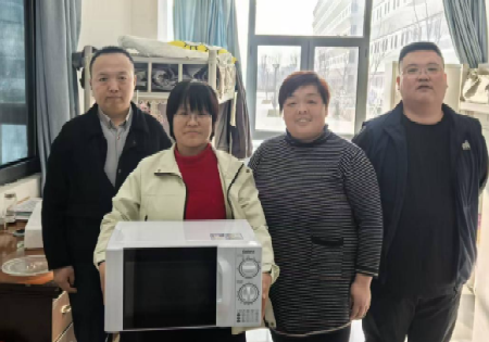 3月7日上午,灵寿校区学生公寓10号楼内暖意融融。“女神节”来临之际,学生工作处携手新龙集团后勤服务中心,为宿管员们送上了一份特殊礼物——电磁炉及配套厨具。学生工作处李国栋、闫心宝、信红敏三位老师,新龙集团后勤中心经理李春锋共同出席配备仪式。