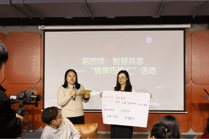 “情景巧思汇”环节聚焦育人实际,各小组围绕“学生挂科情绪低落”“新生适应困难”等典型情景开展头脑风暴,凝练出简单、实用、易操作的解决方法。小组代表依次分享成果,方案或细致入微,或系统全面,体现出扎实专业素养。环节还创新采用“投票积分+补充回答”机制,激发全员参与,现场补充发言积极、掌声不断,实现经验流动与智慧共生。