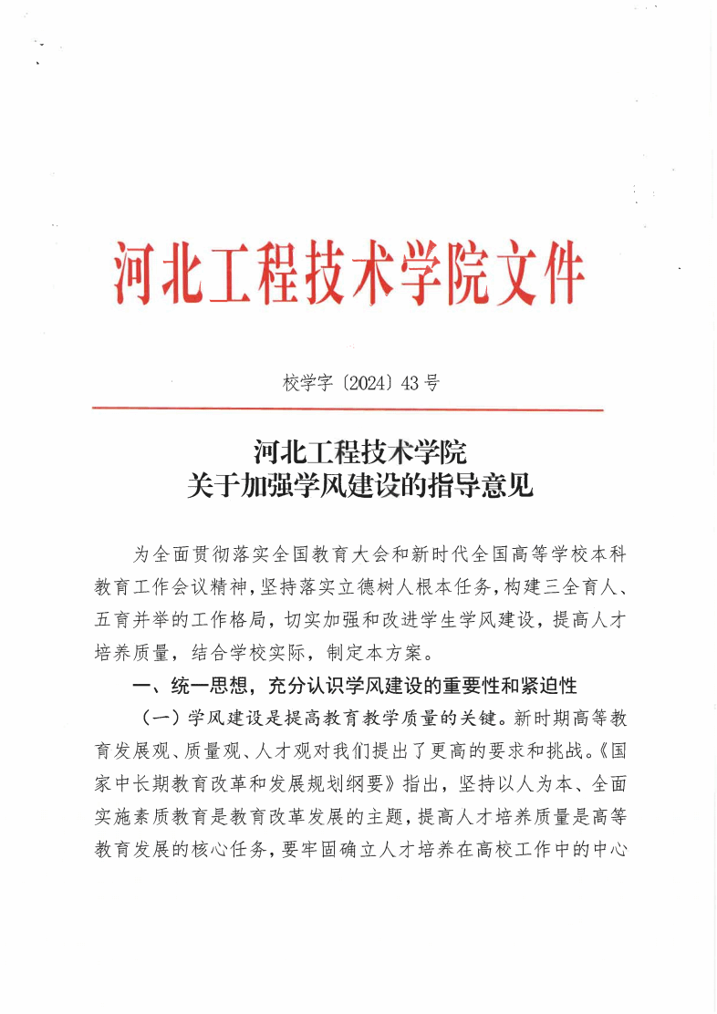 校学字〔2024〕43号关于加强学风建设的指导意见