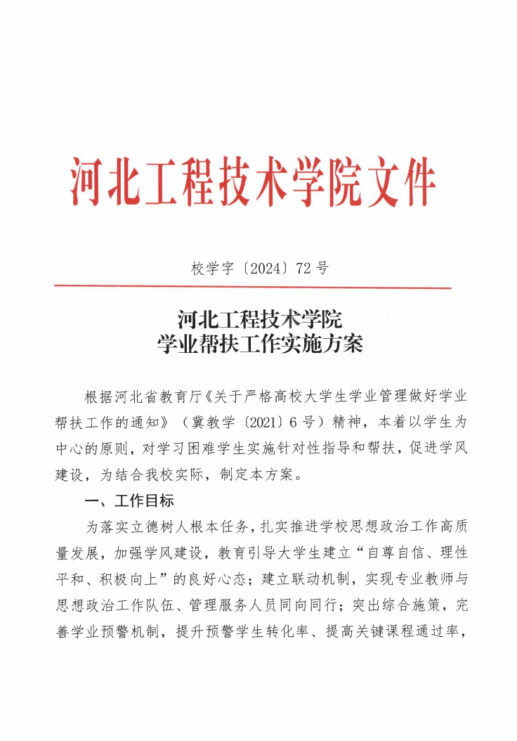 校学字〔2024〕72号学业帮扶工作实施方案