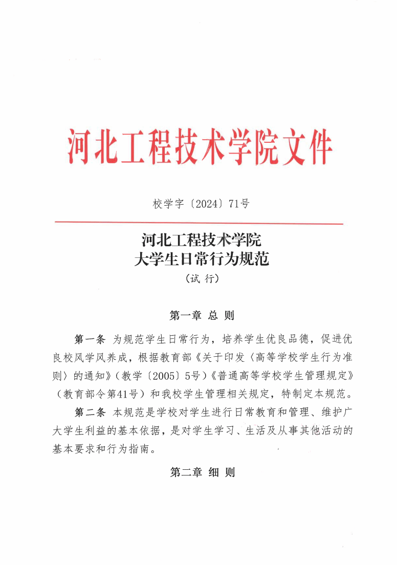 校学字〔2024〕71号大学生日常行为规范(试行)