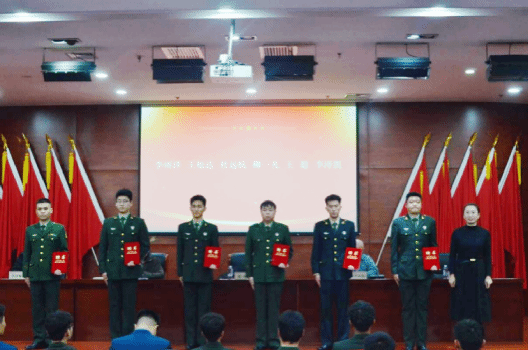 学生工作处(武装部)部长连婷部长宣读国旗护卫队干部任命命令,并为新任干部颁发任命书。
