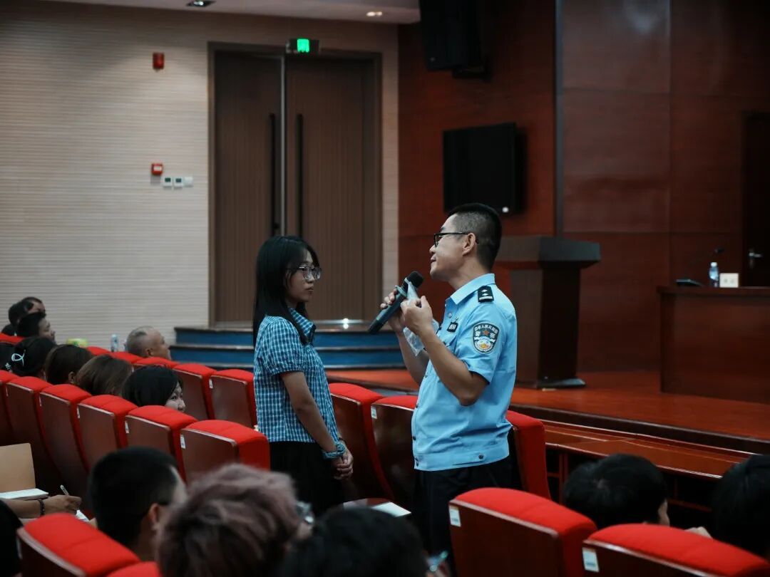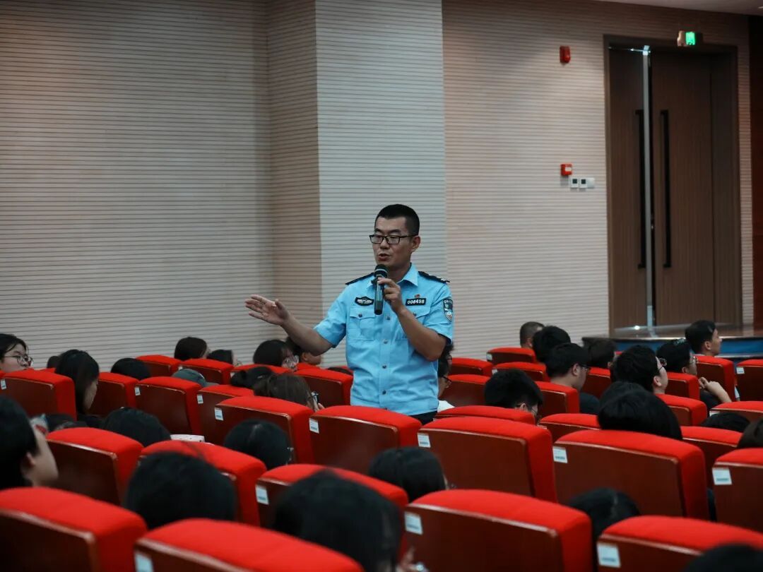 桥西公安分局育文派出所张宇警官以《育文派出所法制宣传进校园之校园安全宣传》为题,用真实案例剖析常见诈骗手法,帮助学生提高警惕,筑牢反诈“防火墙”