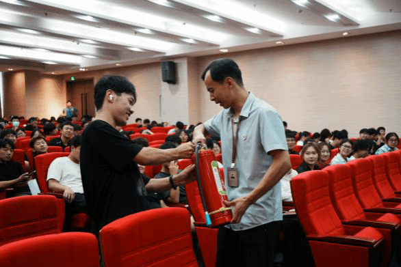 安全工作处梁航通老师带来《关注消防、珍爱生命》专题讲座,并于现场指导消防实操演练,学生们在“沉浸式”体验中掌握了逃生自救技能。